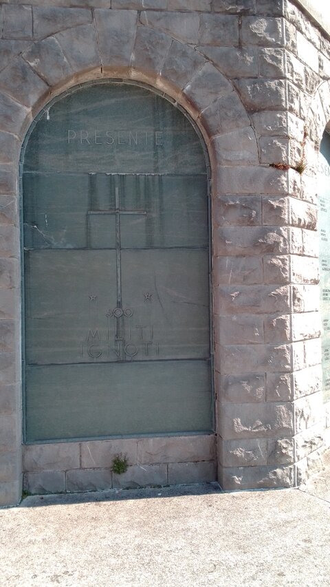 L’ossario a gradoni, ottagonale e a forma piramidale, è simile a quello del Sacrario di Redipuglia. La scritta “presente” campeggia su tutte le nicchie ad arco che contengono i resti dei soldati.