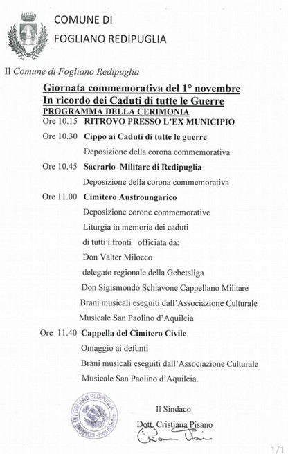 Giornata commemorativa del 1 novembre 2021