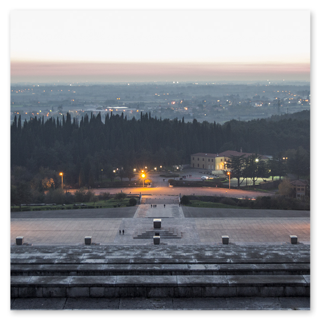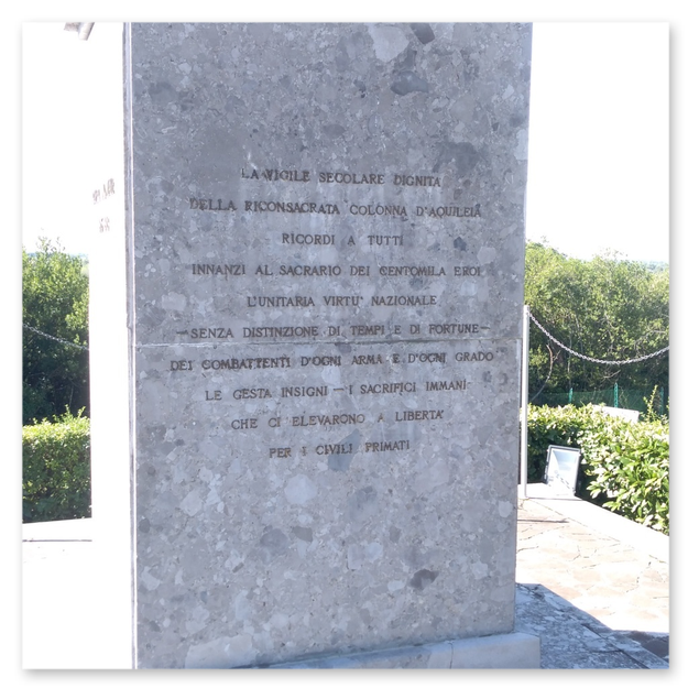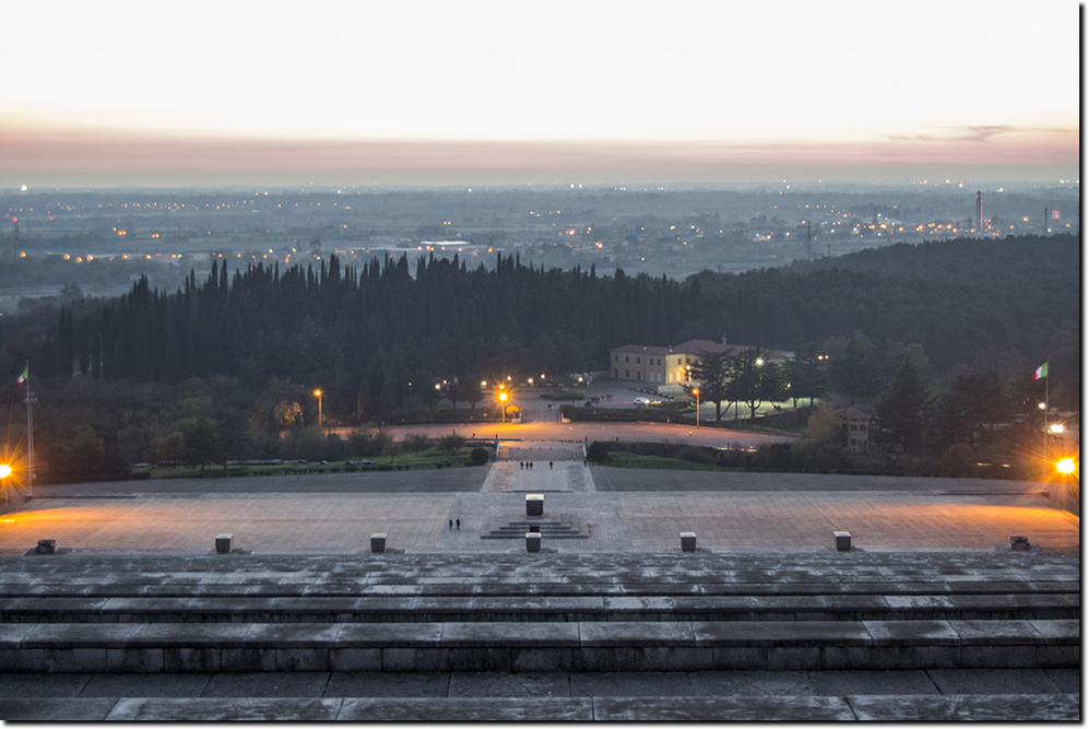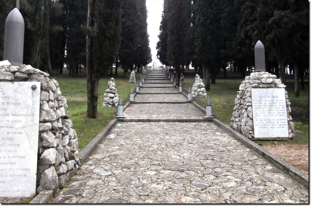 Furono necessari circa due anni di lavoro per sistemare l'area e 5000 chili di esplosivo vennero distribuiti in 20000 cariche che servirono per dare la conformazione desiderata al colle. Venne inaugurato da Mussolini nella simbolica data del 24 maggio del 1923 alla presenza del re, di Emanuele Filiberto di Savoia, duca d'Aosta e comandante della Terza Armata, e di tutte le più eminenti cariche dello stato.