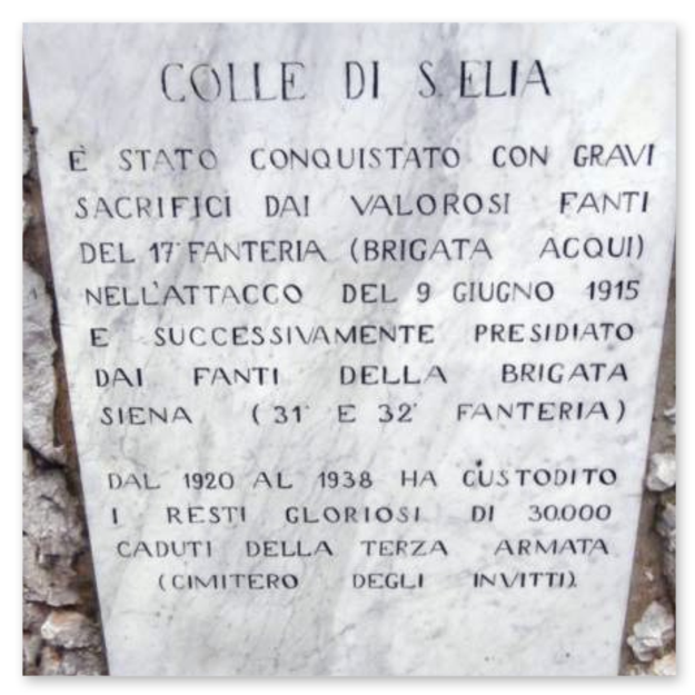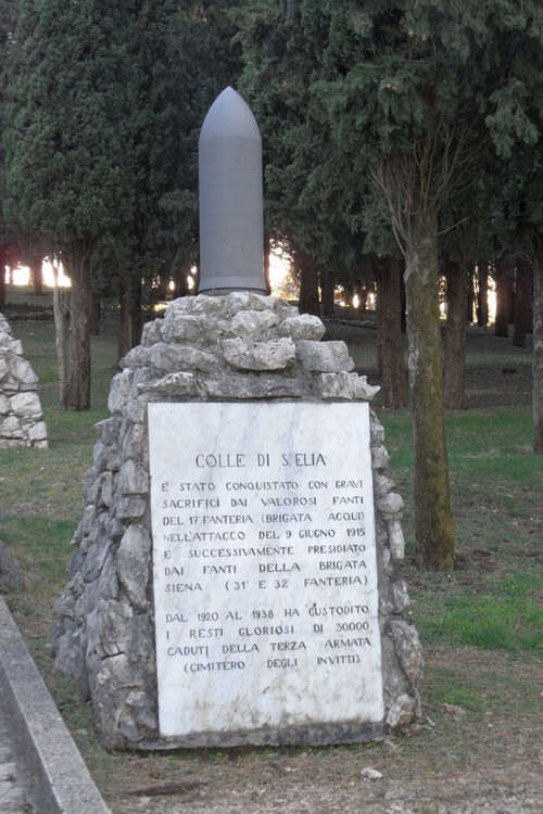L'idea venne subito accettata dal Comandante della Terza Armata, il duca Emanuele Filiberto d'Aosta, così il Cimitero sul Colle Sant'Elia, chiamato “Invitti della Terza Armata” diventa la prima necropoli di Redipuglia. Venne edificato subito dopo la guerra affinché esprimesse il tema del ricordo legato alla vicinanza del conflitto appena terminato e allo stretto rapporto col territorio.
