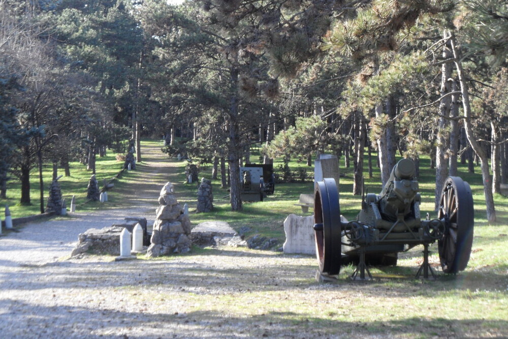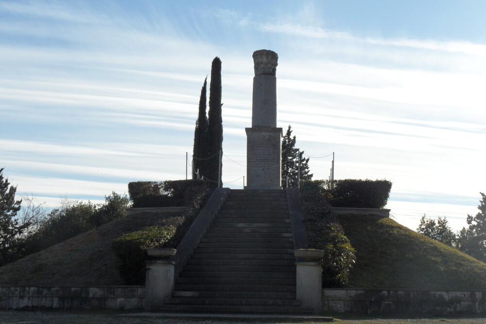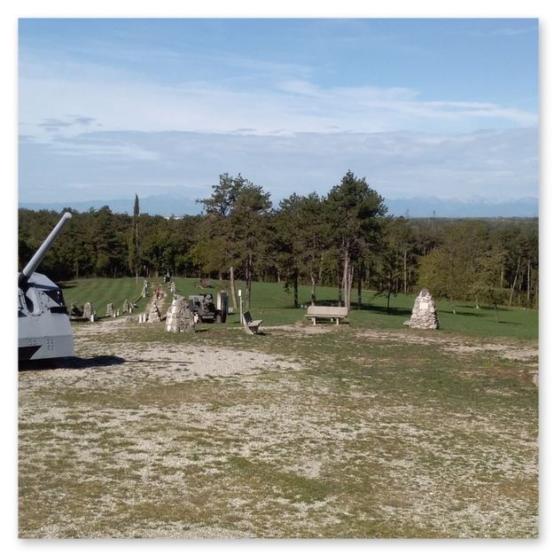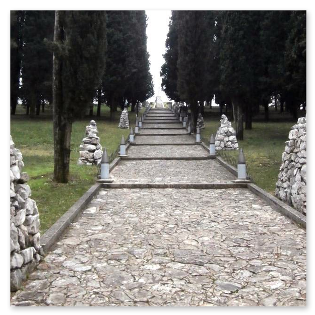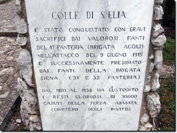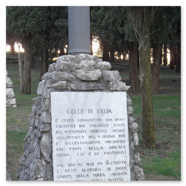 La sistemazione più adatta per un intervento di questa portata risultò essere la cosiddetta montagnola ad est del colle di Sant'Elia, perché posta di fronte al ciglione carsico teatro di tante battaglie e quindi con un grande valore simbolico.