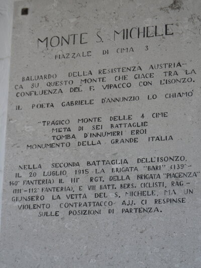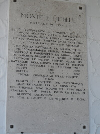 Il San Michele e Gorizia vennero conquistati dell'esercito italiano con la sesta battaglia dell'Isonzo il 6 agosto 1916.