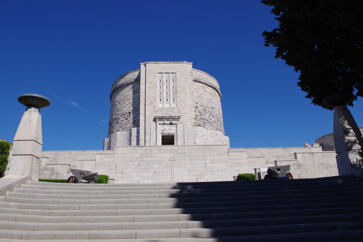 Il Sacrario di Oslavia è ubicato a nord di Gorizia in posizione collinare presso la Quota 153 del Calvario dal quale si domina tutta la città.
